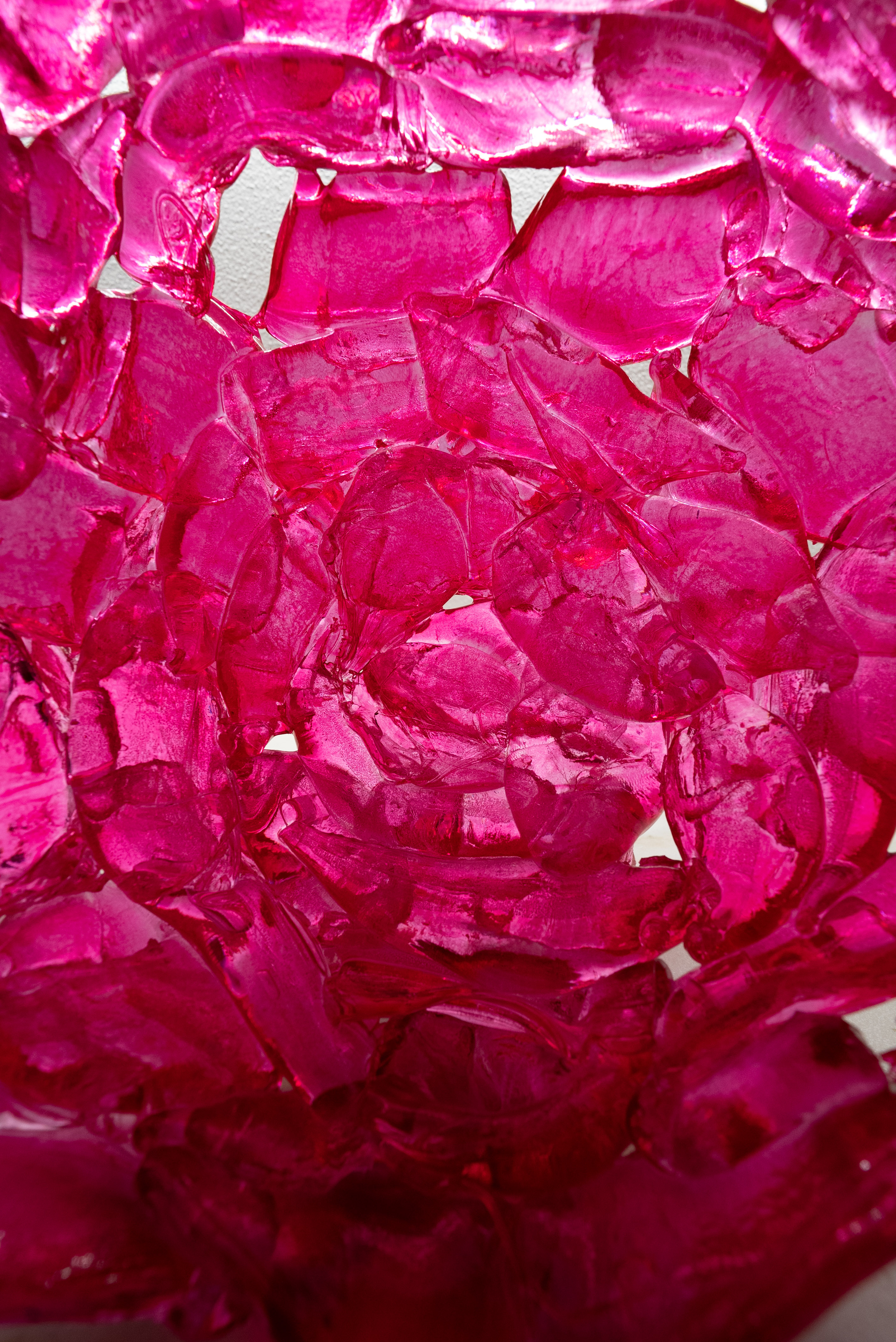 Crush explores what happens when fragility becomes structure. The collection is built around the idea of the “crushed” object: a vessel that looks as if it has been fractured, pressed, or collapsed—yet re-emerges as a stable body. Cast in translucent resin, each piece behaves like a small architecture of impact, catching and projecting color onto its surroundings.